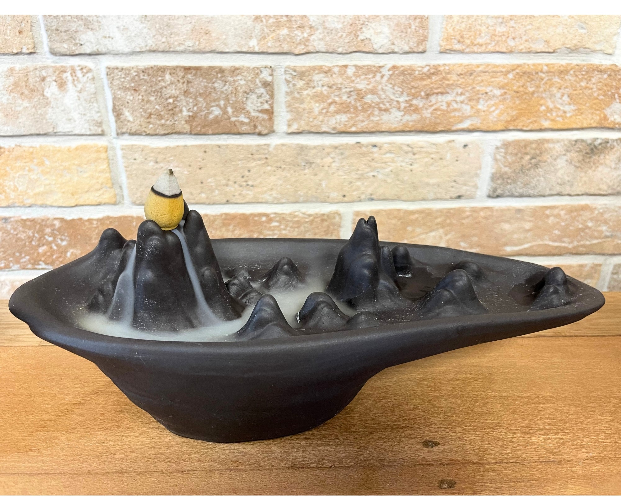 Bring the essence of the mountains into your home with the Mountain Scape Backflow Incense Burner. This burner showcases an intricately carved mountain landscape, complete with cascading waterfalls. As the incense cone smoulders, it produces a mesmerising river of smoke that flows through the valleys, creating an atmosphere of peace and harmony.