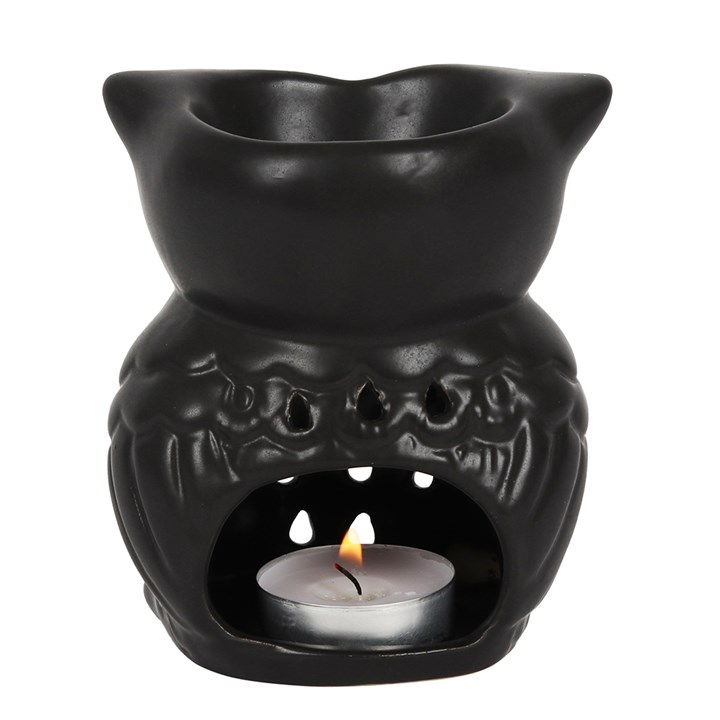 Enhance your home decor with this sweet black owl oil burner. With cut out details you can see the candle glowing within, creating a warm and cosy atmosphere. Can also be used with wax melts.