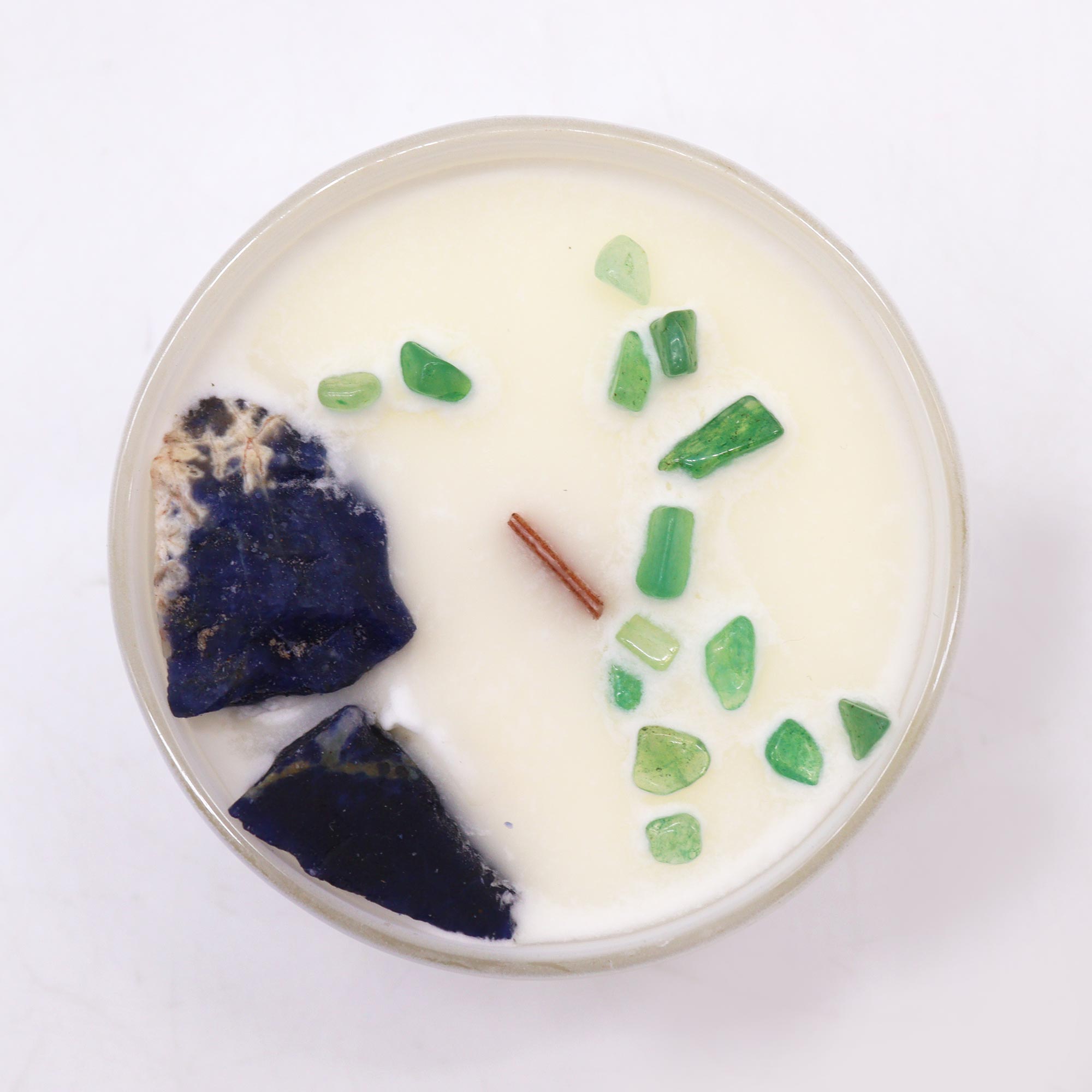 Light this candle to create an atmosphere of clear communication and self-expression in your space. Allow the soothing fragrance of "Gentle Reasons" to inspire your authentic voice, while the energy of Sodalite and Jade Chip's crystals amplifies your capacity for honest and open communication.