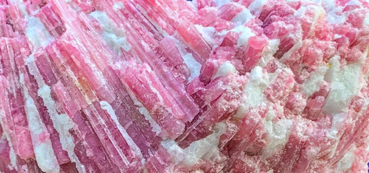 Pink Tourmaline is a pink variety of Tourmaline that develops its complex chemistry in granite pegmatite and metamorphic rocks. It's a crystalline silicate mineral in which boron is compounded with elements such as iron, aluminium, sodium, magnesium, lithium, or potassium. Pink Tourmaline gets its beautiful colour from lithium impurities and irradiation from the surrounding rocks. Tourmaline can grow with other minerals such as quartz, beryl, and feldspar.
