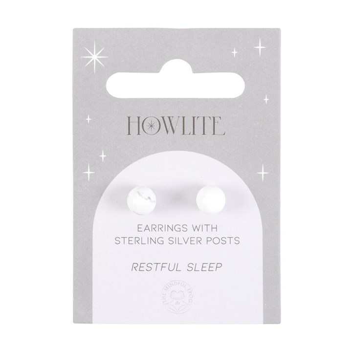 This pair of howlite crystal stud earrings comes on a matching backing card and makes a meaningful gift for those in need of spiritual protection. Howlite is a powerful semi-precious stone believed to absorb stress and negative thoughts, making it ideal for emotional healing and relaxation. Finished with sterling silver posts with butterfly backs.