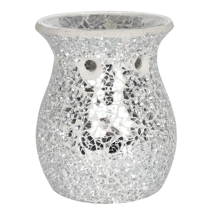 Beautiful large oil burner with a silver mirrored crackle effect. This item can also be used as a wax melt burner. Product Dimensions: H14cm x W11cm x D11cm Packaged Dimensions: H16cm x W12.