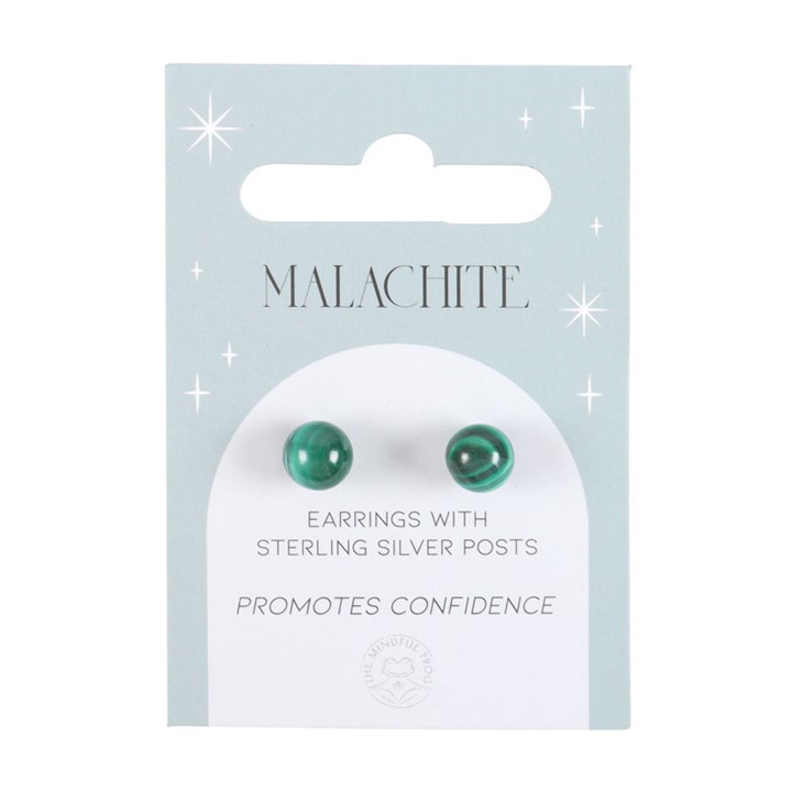 This pair of malachite crystal stud earrings comes on a matching backing card and makes a meaningful gift for those in need of spiritual protection. Malachite is a powerful semi-precious stone believed to protect from negative energies, making it ideal for promoting confidence and inner strength. Finished with sterling silver posts with butterfly backs.