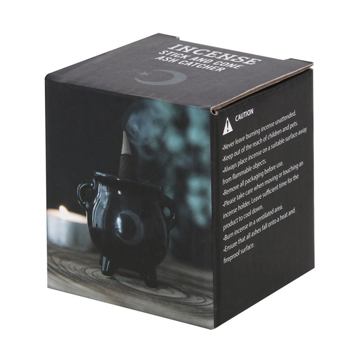 Whether used with incense sticks or cones, this ceramic cauldron incense holder makes a quirky home fragrance gift for any witch. A printed moon symbol finishes off this unique design. Product Dimensions: H6cm x W6.