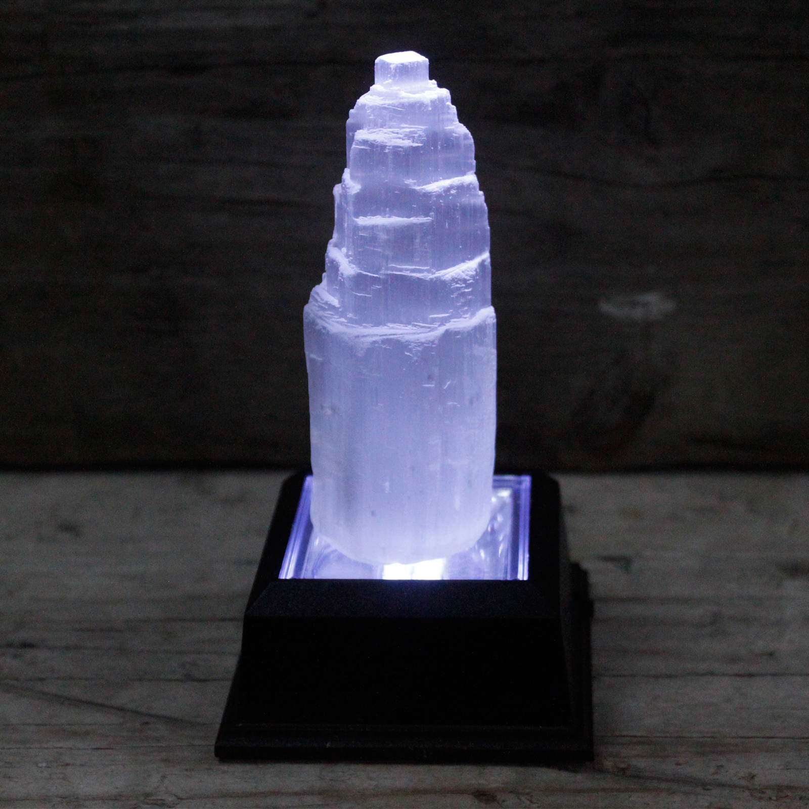 This beautiful Selenite Tower is from the mountains of Morocco. The crystal received its name from the Greek goddess of the moon: Selene. and you can see why.
