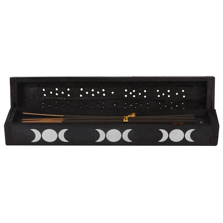 This incense gift set includes 10 sage fragranced incense sticks in a mango wood box. Printed with white triple moons, this box doubles as both an incense holder and storage Product Dimensions: H6. 5cm x W30.