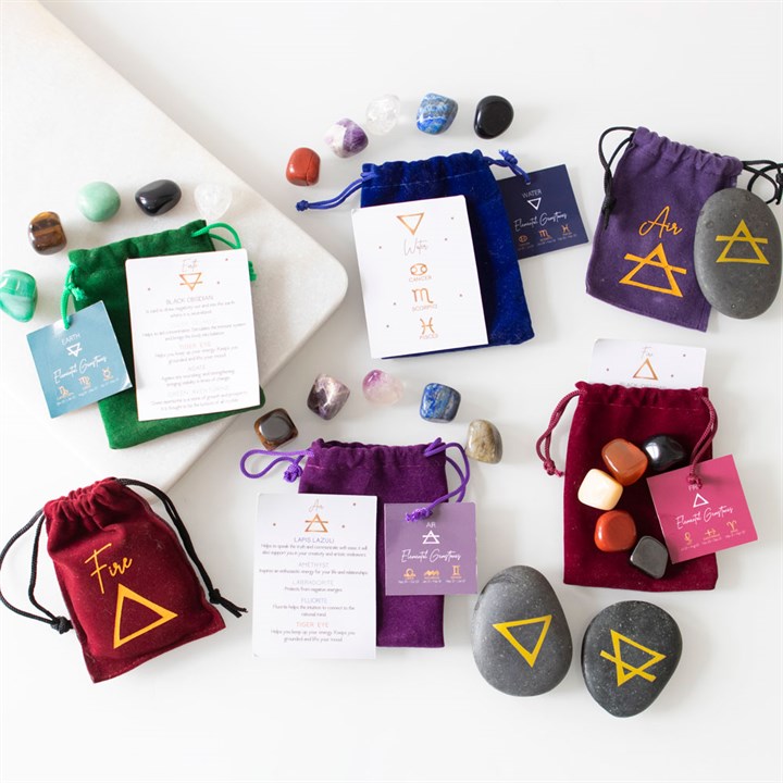 Cancer, Scorpio and Pisces are signs ruled by the element of water and are known to be sensitive and highly intuitive. This stunning set of 5 elemental tumblestones includes Lapis Lazuli for communication, Black Obsidian for clarity, Clear Quartz for concentration, Amethyst for energy and Red Jasper for comfort. Beautifully presented in a protective velvet drawstring bag with hang tag and informative insert card.