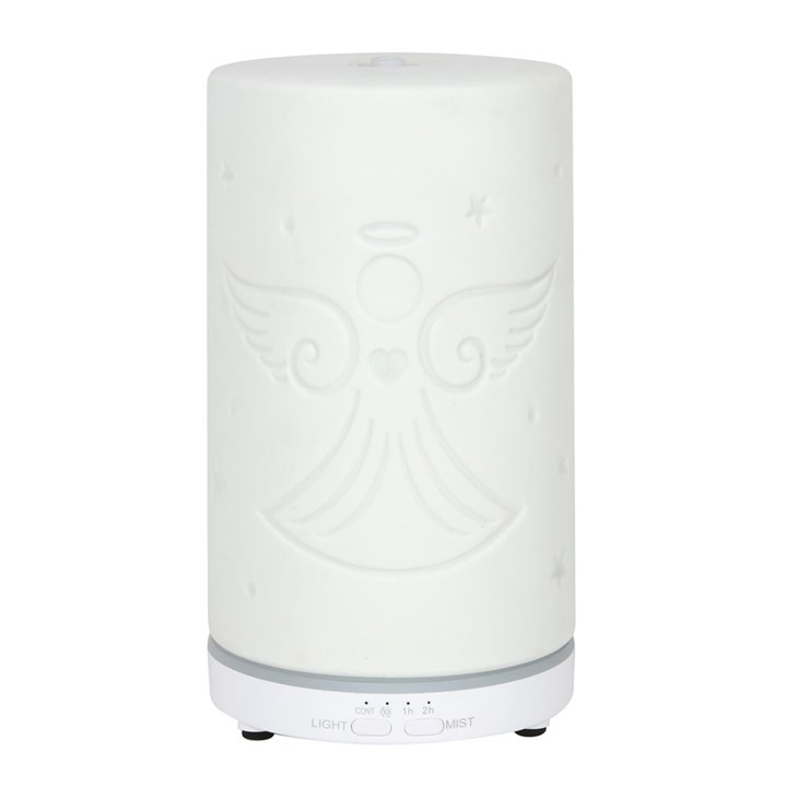 A beautiful white ceramic Angel design electric aroma diffuser. Add drops of essential oil in the water tank to release the scent with the water vapour. Humidifiers are reported to have several health benefits including reducing snoring, dry coughs, asthma symptoms and allergies Product Dimensions: H15.